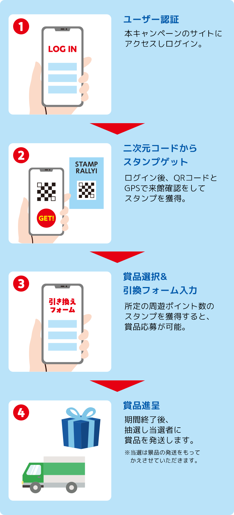 集めたスタンプの数ごとに素敵な賞品をご用意。